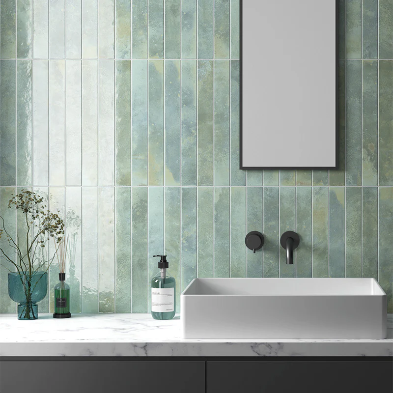 Soft, layered and full of character, Jumairah Aqua Green blends green and blue tones with warm, rustic undertones for a beautifully nuanced finish. The subtle colour variation gives this tile a relaxed, handmade feel, perfect for interiors that favour texture over uniformity.